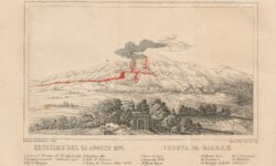 Giovanni GUARINI, Luigi PALMIERI, Arcangelo SCACCHI, Memoria sullo incendio vesuviano, Napoli, Gaetano NOBILE, 1855. Litografie. Tav. I-III. Disegnatore Arcangelo SCACCHI. Litografo: Bruno COLAO. Tav. IV. Disegnatori: Arcangelo SCACCHI e Guglielmo GUISCARDI. Litografo: Bruno COLAO. Tav. V. Disegnatore: anonimo. Litografo: Antonio MEZZANO. Tav. VI. Disegnatore: Augusto CIULI. Litografo: Gioacchino FORINO. La…